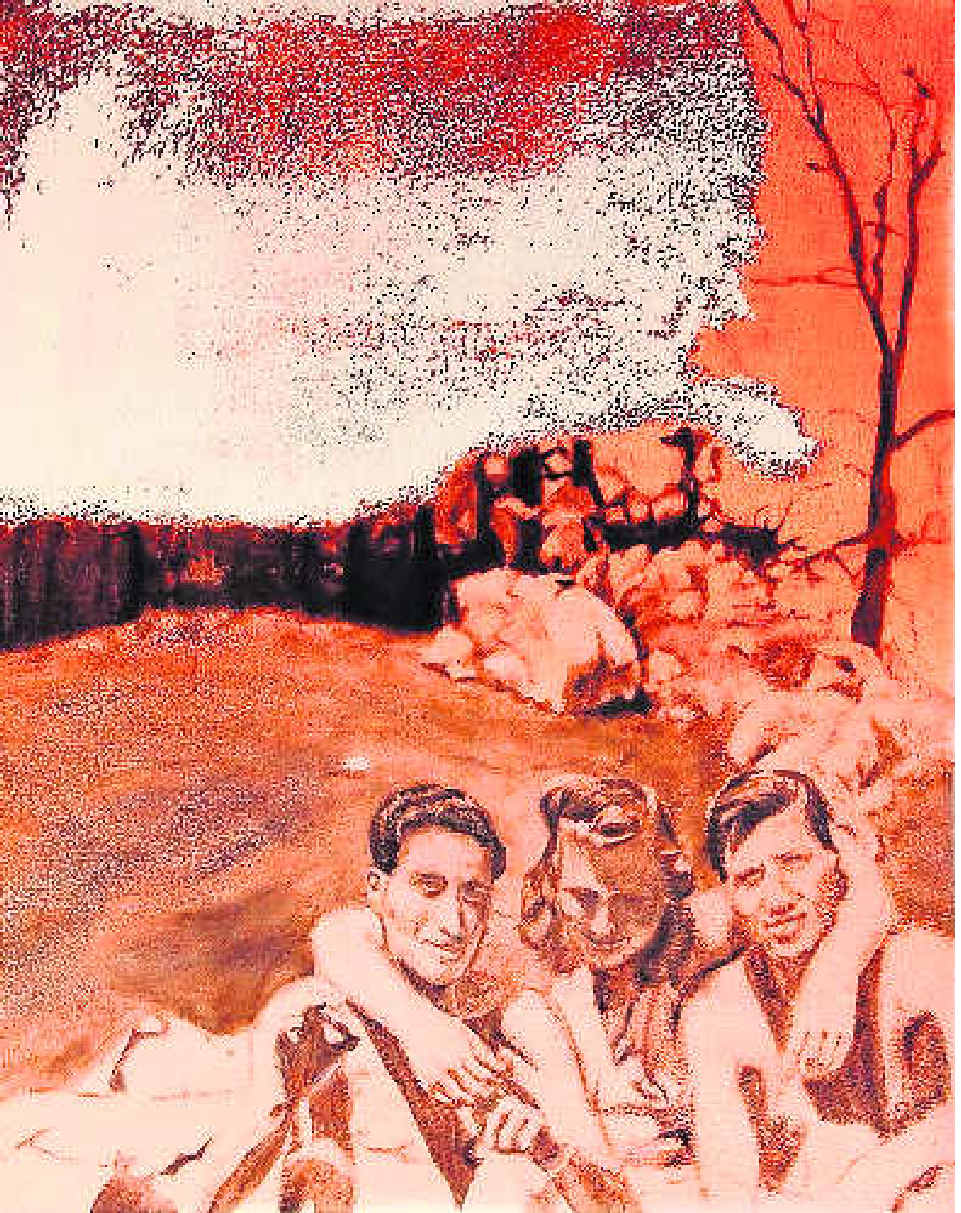 Das Gemälde „Alte Freunde“ (2013) von Tanja Huberti nach einer Foto-Vorlage. Fotos: Immenga 2012 fing es in einem aufgegebenen Schlecker-Markt in St. Arnual an, jetzt zeigt die Kunsthistorikerin Silke Immenga beachtenswerte zeitgenössische Kunst in einer Industriehalle in Überherrn.